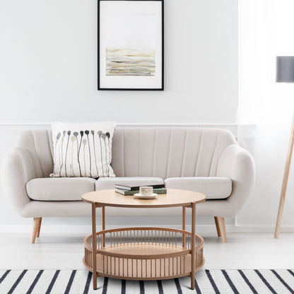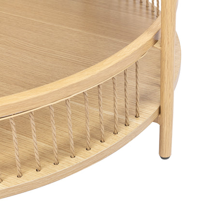 Gavin Steel Coffee Table Oak – Modern Round Design with Rope Detailing & Open Storage