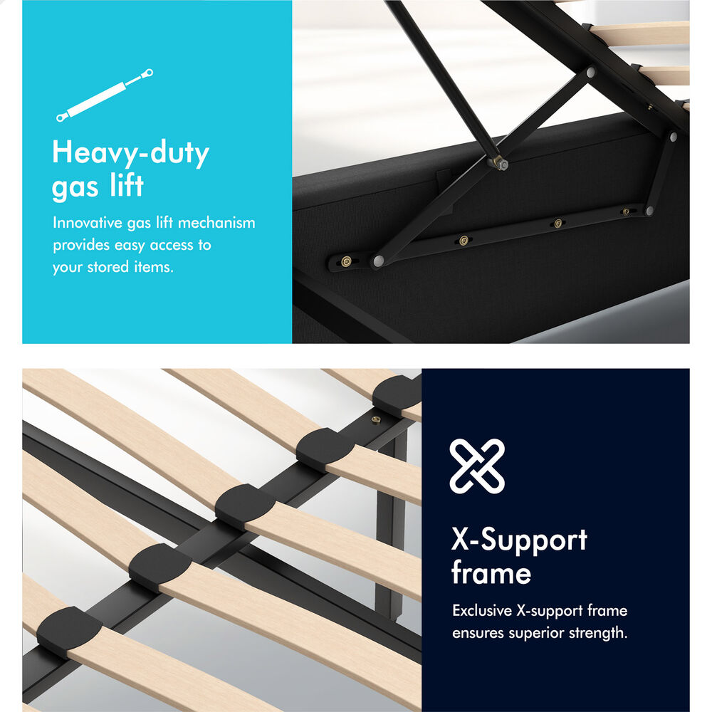 Maximise your space with the Black Aurora Upholstered Gas Lift Bed. Combining clever under-bed storage, modern LED lighting, and a padded headboard for extra comfort, this functional and stylish bed is ideal for compact living or anyone who wants more from their bedroom. Constructed with durable materials and a ventilated base for airflow, it’s a practical solution that doesn’t compromise on design or support.