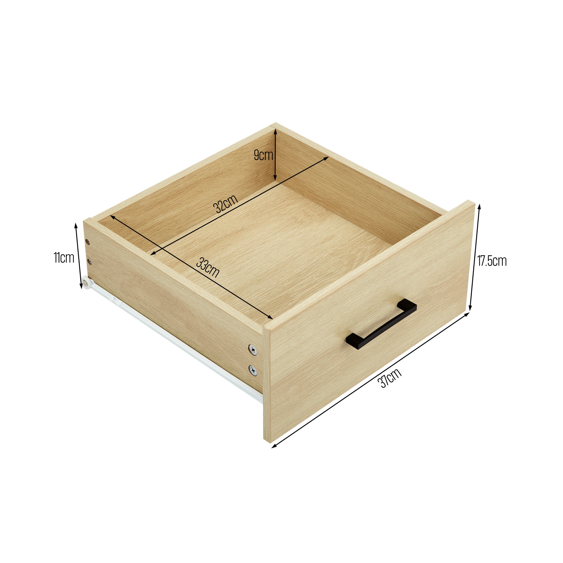 Material 12mm Particleboard with paper lamination frame and interior | Metal Drawer Runner | 2.7mm drawer bottom and backing board