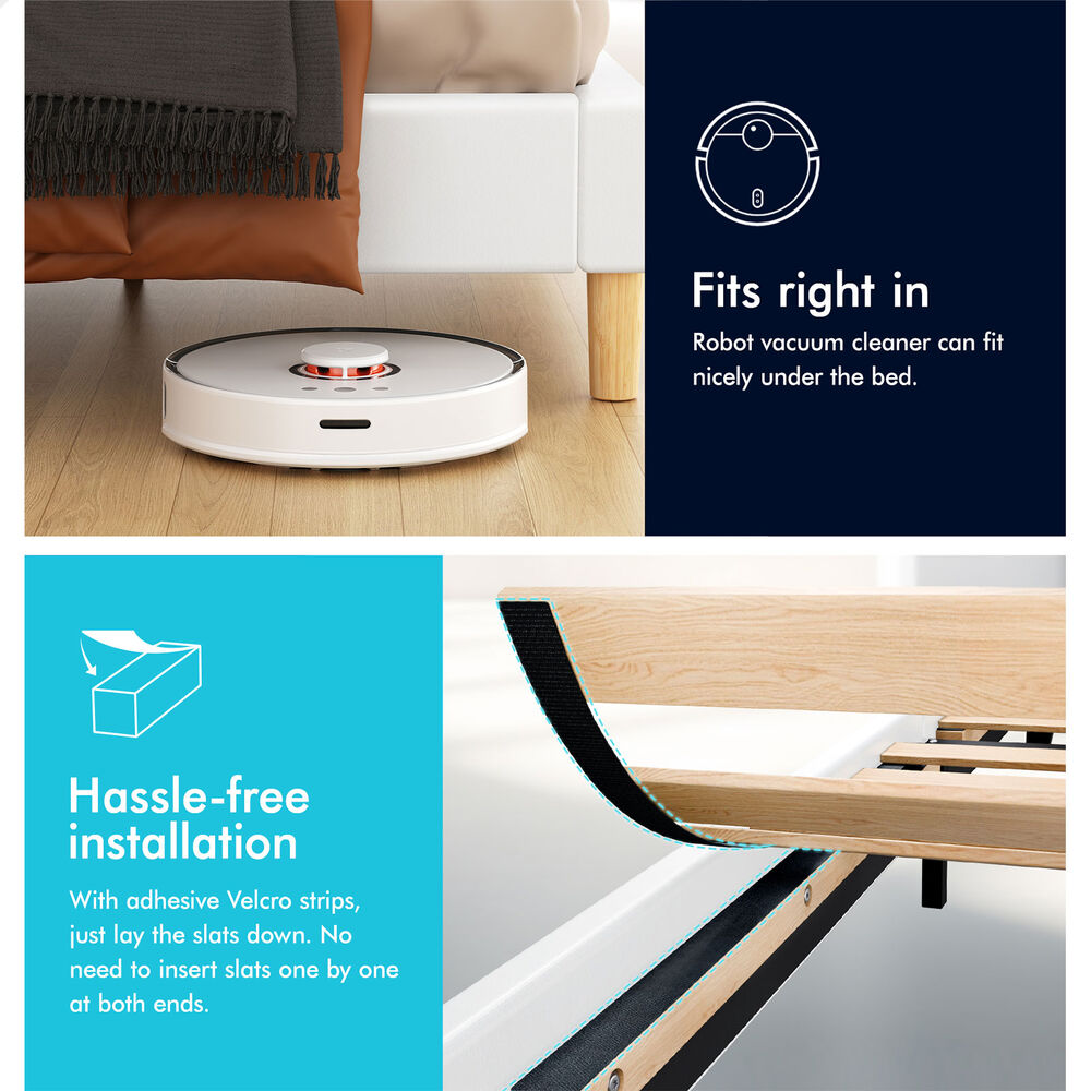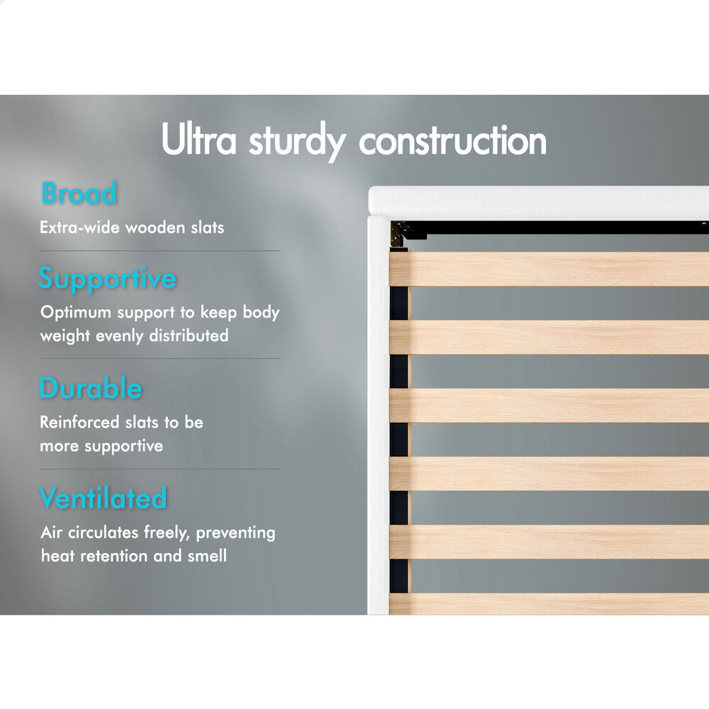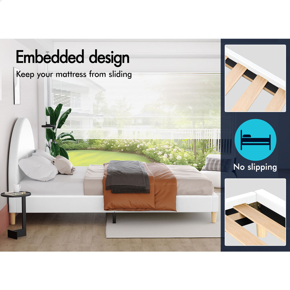 Crisp and contemporary, the Kenyatta in white faux leather adds a touch of understated luxury to any bedroom. With its smooth arched headboard, embedded mattress design, and sturdy X-support frame, it offers lasting comfort and a clean, modern finish that brightens your space.
