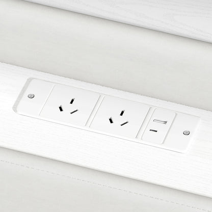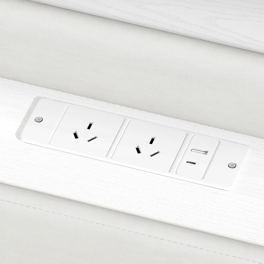 Integrated dual USB ports and two Australian standard power sockets keep your devices conveniently charged, while the 16-colour LED light strip adds customisable ambience via remote or app control.
