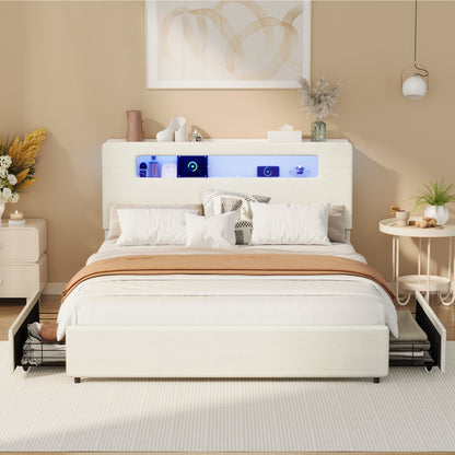 The Mona LED Storage Bed is a modern all-in-one design that blends style, storage and smart functionality. Upholstered in soft linen fabric, the headboard features a built-in display shelf perfect for books, décor and bedside essentials.