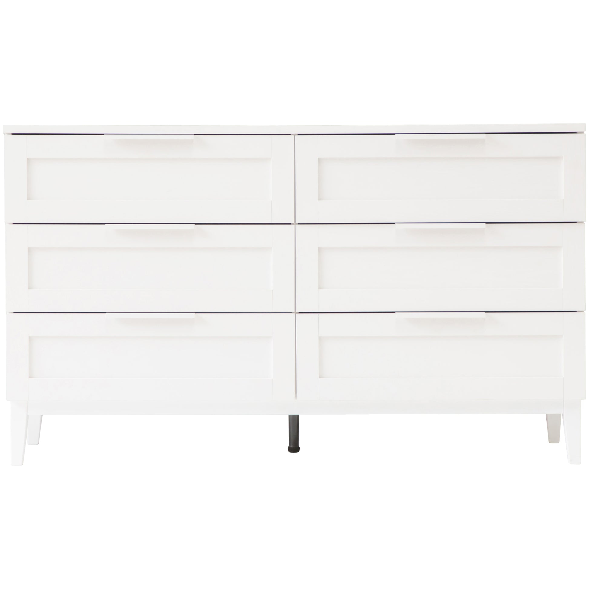 The Tenley 6 Drawer Chest is the perfect addition to your bedroom. Allowing you to store ample items from clothes to personal accessories. Featuring 6 full-size drawers with high quality glider runners, they provide sufficient storage for all your belongings. The 3D scratch-resistant Wood-Look white Laminated finish gives a modern fresh look to your bedroom. Colour coordinated metal powder-coated handle modernises this item for a classic, yet modern finish