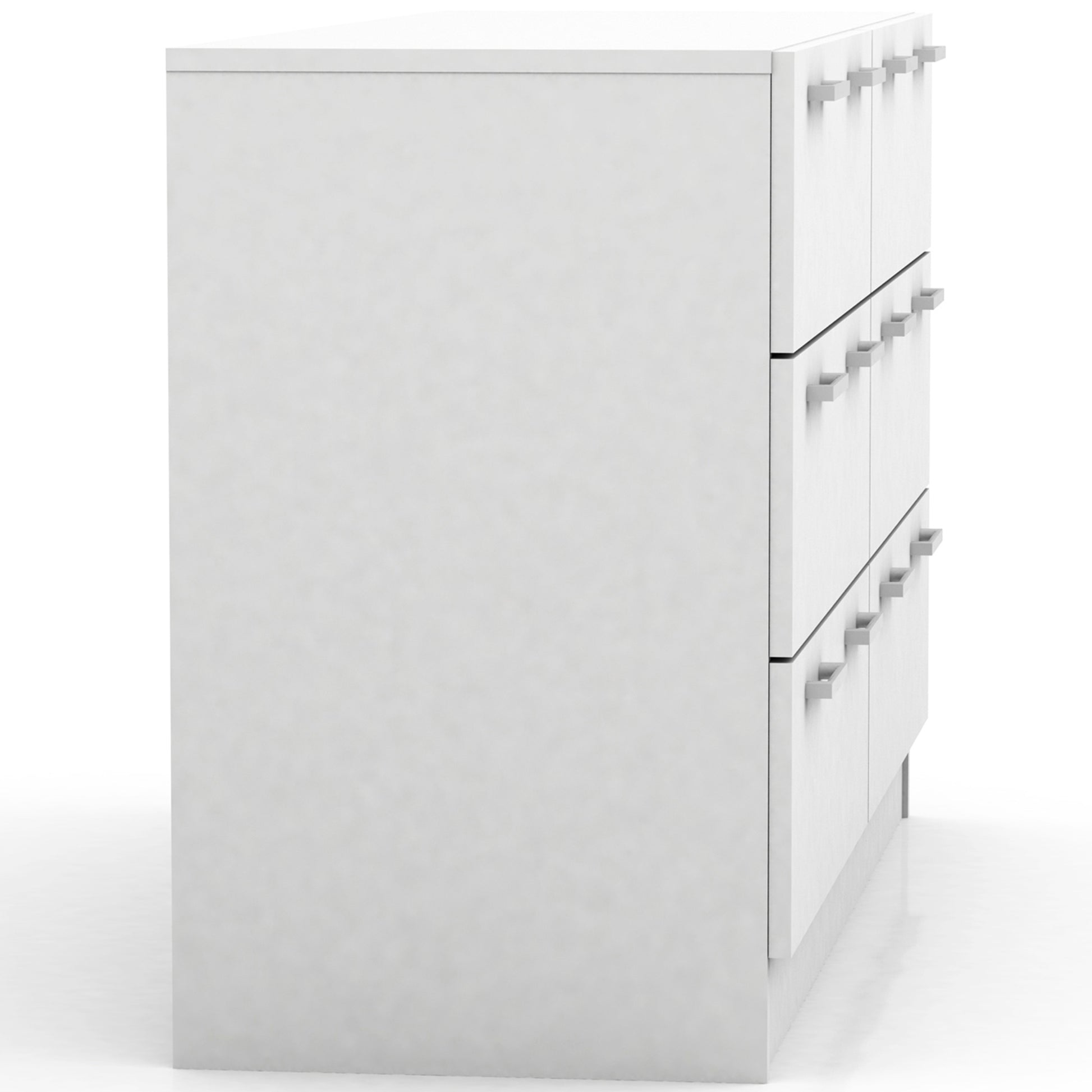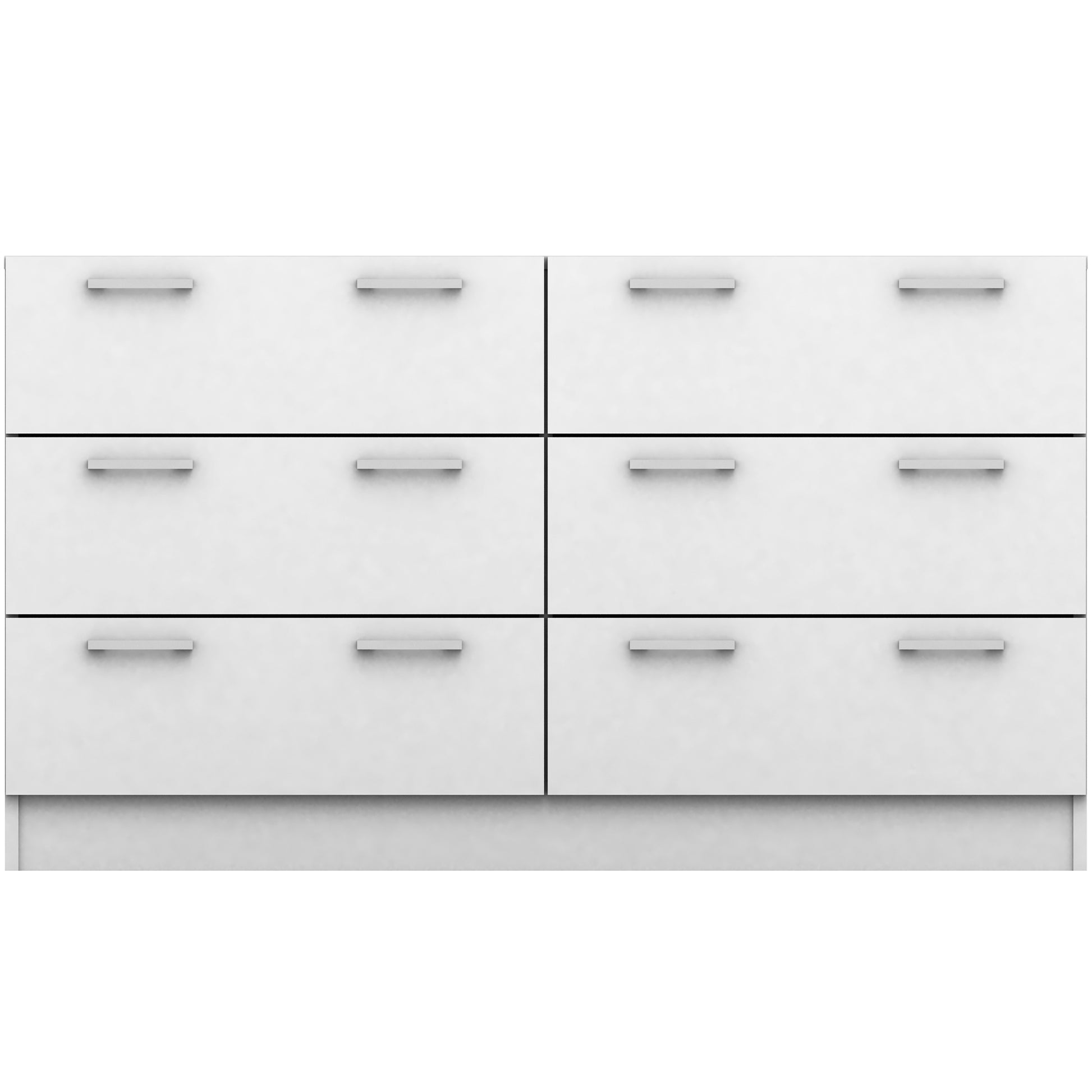 The Tribecca 6 Drawer Low Boy Chest offers both style and practicality with its sleek silver accents and scratch-resistant 3D foil finish. With six spacious drawers and sturdy particle board construction, it’s perfect for storing clothes, books, or keepsakes. Includes wall anchoring for safety; assembly required.