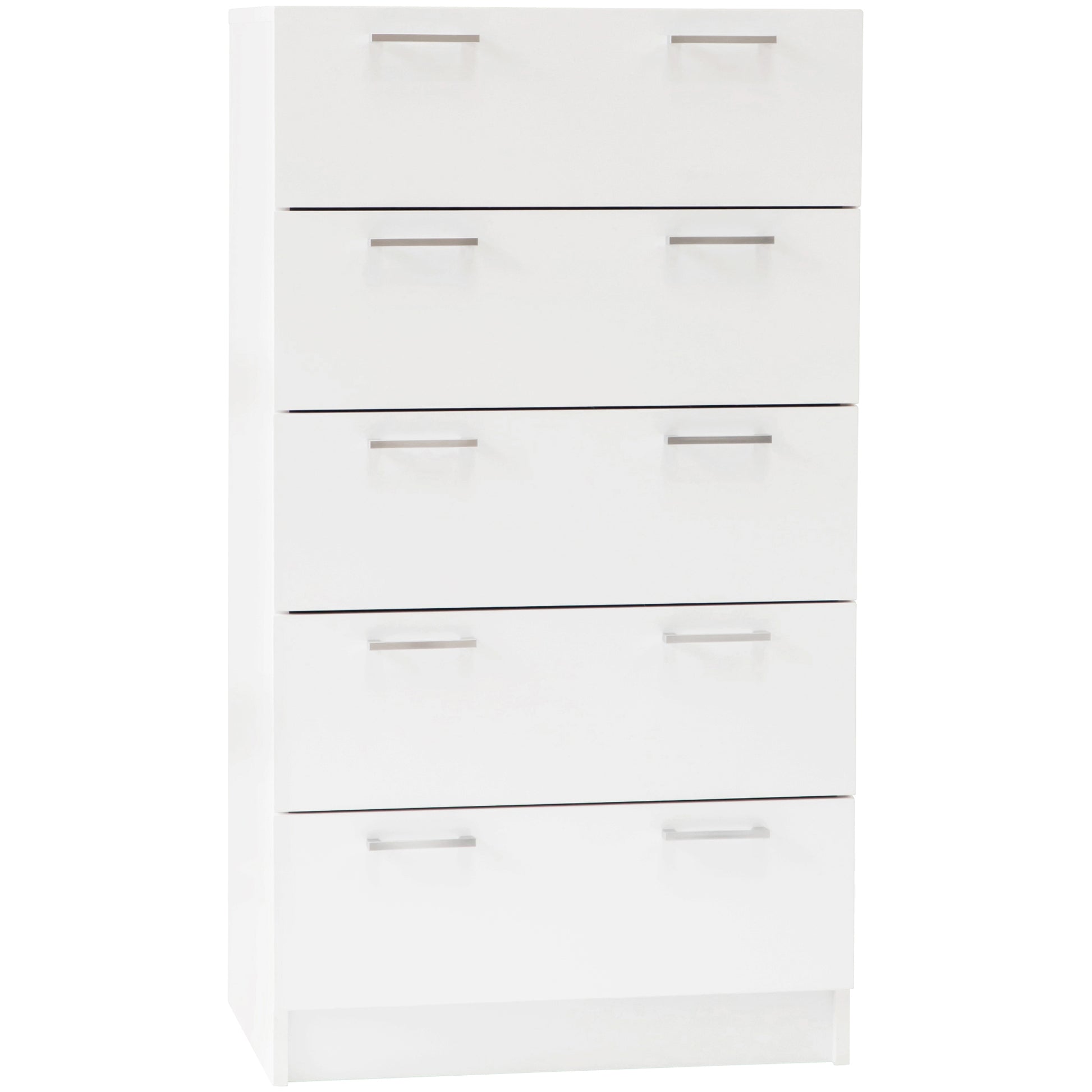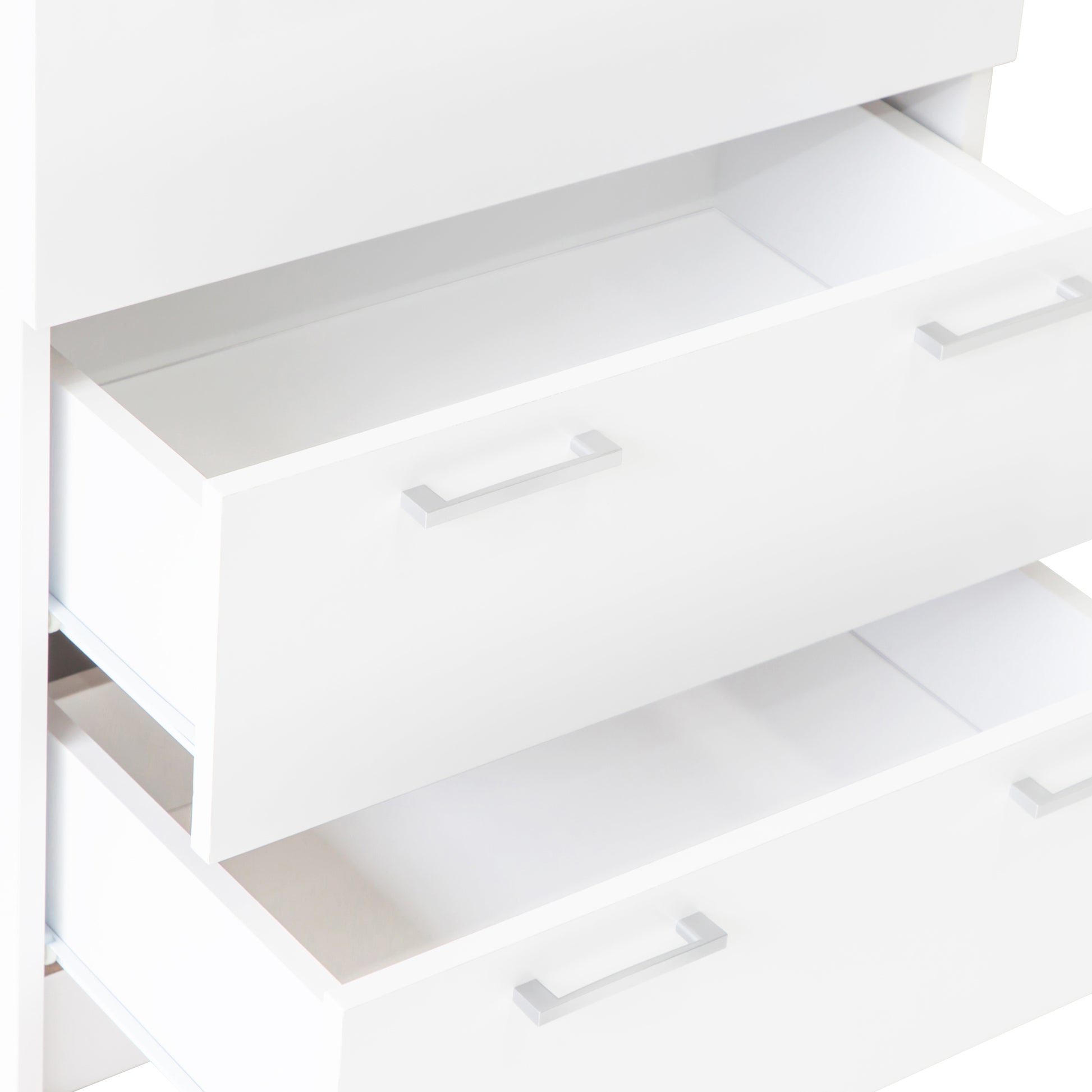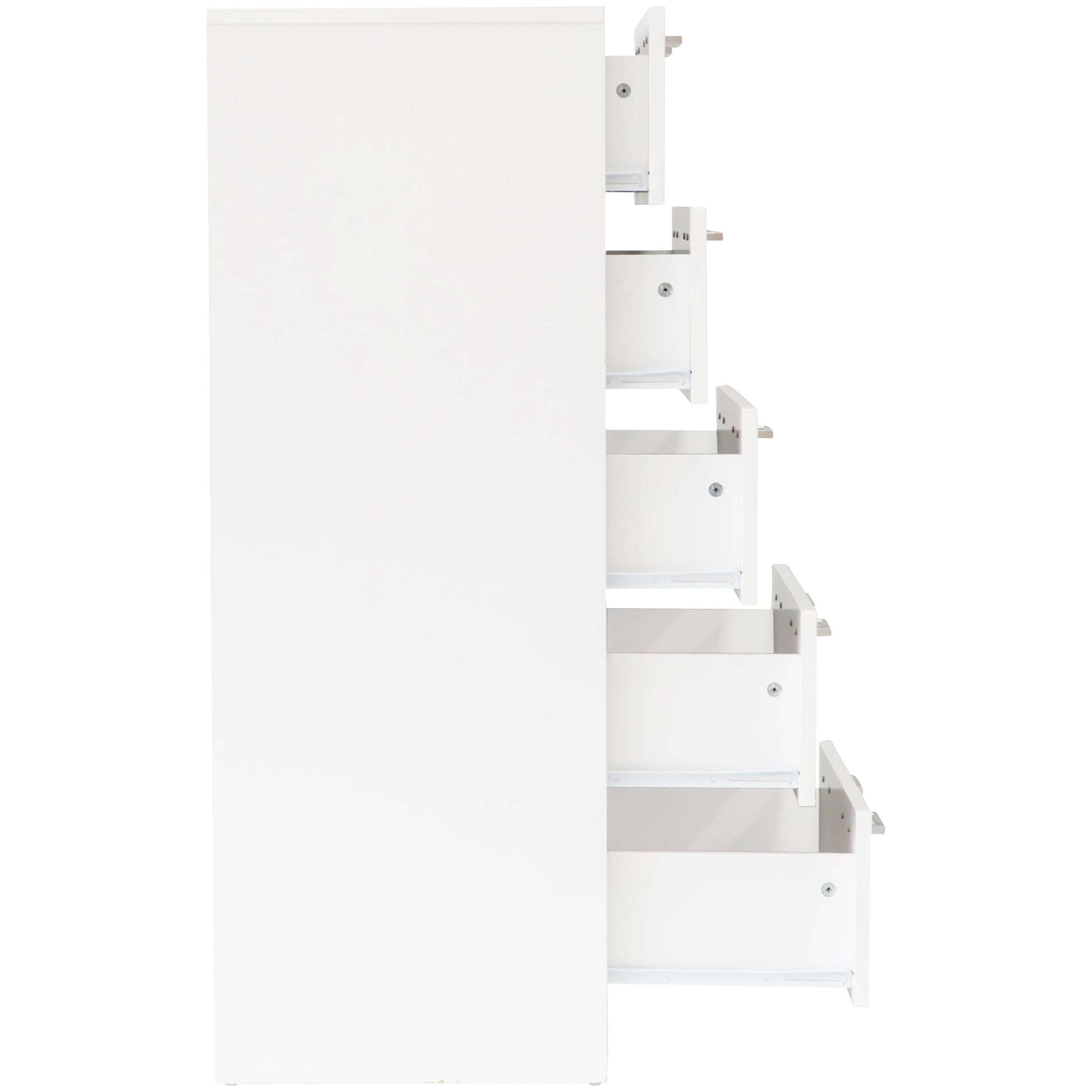 The Tribecca 5 Drawer Chest blends style and storage with its silver-accented design and five spacious drawers. Built from sturdy 15mm particle board with 5mm MDF backing, it’s perfect for clothes, books, or bric-a-brac. Includes wall anchoring for safety; assembly required.