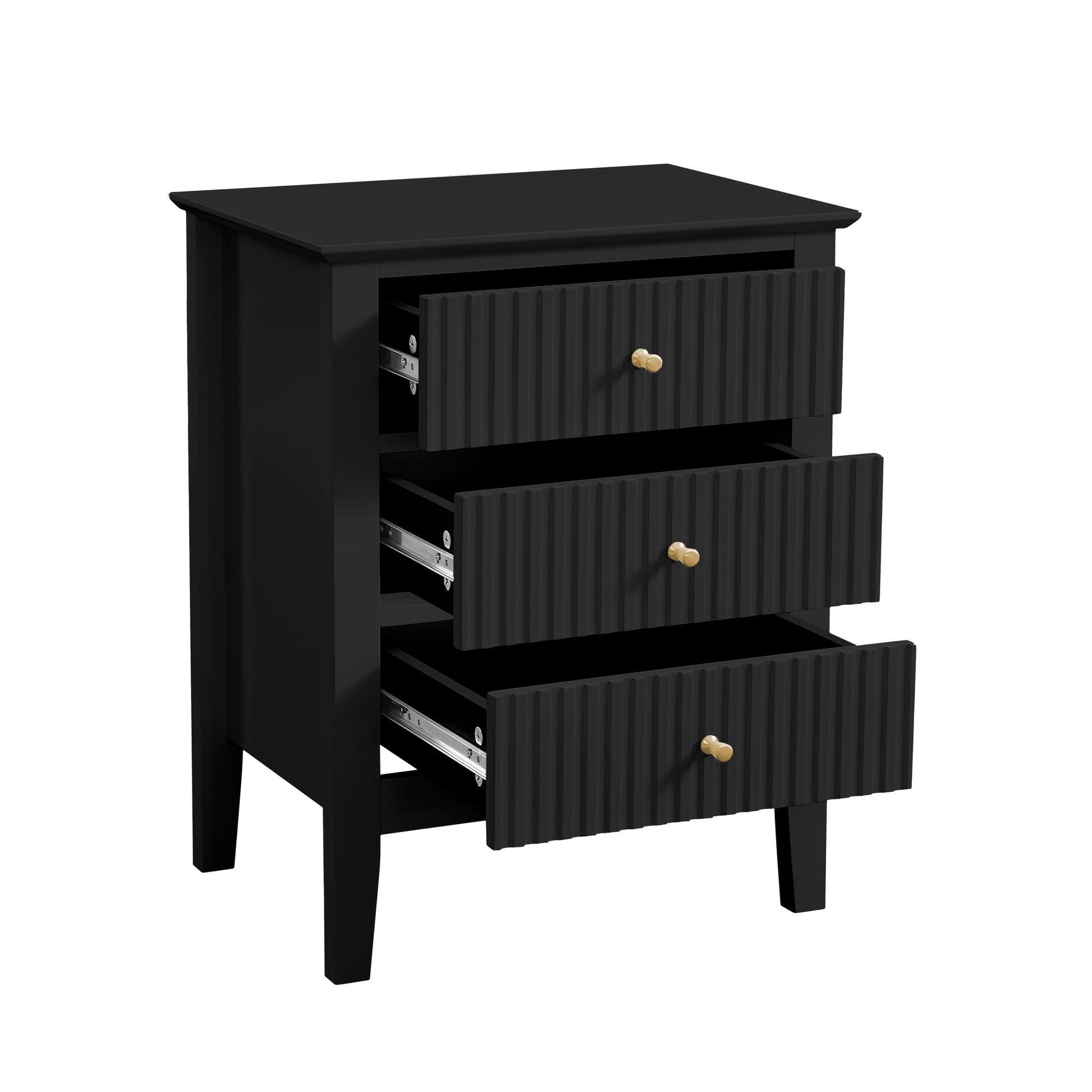 Introducing the chic Zara Fluted 3 drawer side table - the ideal complement to your living area or bedroom! Boasting 3 roomy drawers equipped with sturdy metal sliders, this table is perfect for stashing all your knick-knacks and essentials. Crafted from top-notch MDF and finished with NC paint, it's a timeless piece that's sure to elevate any space